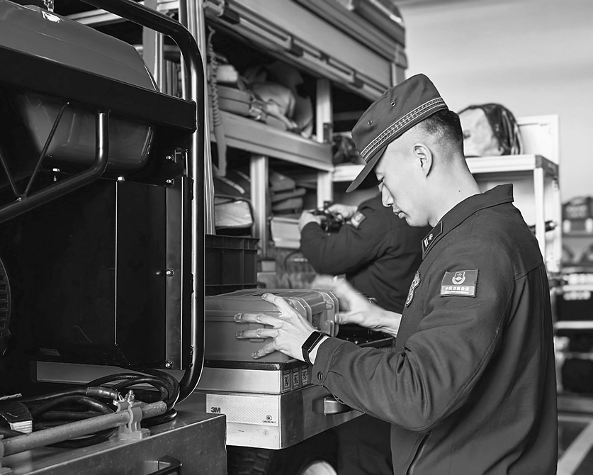 “每天早晨,车辆出库都会进行全面检查。日常检查容不得半点马虎,在这里多节约一秒,就意味着能为救援群众多争取一秒。”指导员李昱衡介绍道。
