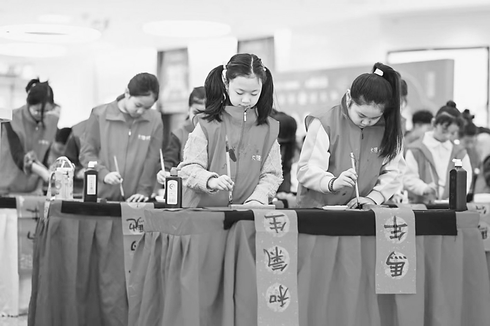 2月11日,太原近百名萌娃齐聚一堂,挥毫泼墨书写新春祝福,用笔墨传递年味,迎接马年新春到来。 活动现场,红纸铺展,墨香四溢,小朋友们在书法老师指导下认真执笔、蘸墨、落笔,一笔一划书写春联与“福”字。“孩子们在书写中感受汉字之美与传统年俗魅力,既锻炼了书写能力,也让春节更具仪式感,一幅幅红红的春联、一个个圆润的“福”字,寄托着对新年的美好期盼,也为锦绣太原城营造了浓郁的新春氛围。”书法老师赵鑫峰说。 本报记者 李睿 摄影报道