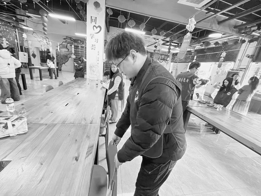 活动现场,青年志愿者分工协作,有序引导园区游客参观非遗展区,耐心解答游客关于非遗的咨询;配合园区工作人员整理活动会场,规范摆放各类物资;协助非遗传承人仔细检点晋绣等非遗技艺的创作素材、手工工具,做好分类收纳与整理,为非遗技艺展示和体验提供保障。