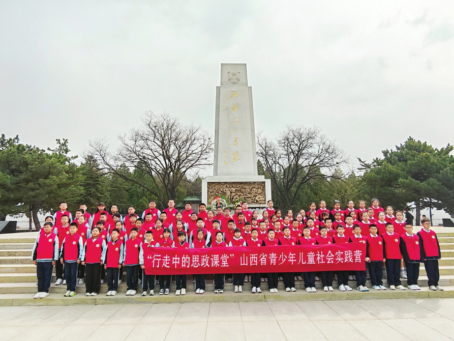 “让我们以庄重仪式致敬英雄、铭记历史,传承红色基因,赓续精神血脉。”3月28日上午,春风轻拂着青松翠柏,在激昂的话语声中,由共青团山西省委、山西省少工委主办,山西共青团融媒体中心承办的“行走中的思政课堂”山西省少年儿童社会实践营——“行走悟初心 红色润童心”祭英烈活动正式拉开帷幕。来自太原市桃南小学、朝阳街小学的90名少年儿童满怀崇敬与追思之情,走进太原解放纪念馆牛驼寨烈士陵园、阳曲县店子底村红色教育基地,开启了一场意义非凡的红色研学之旅。