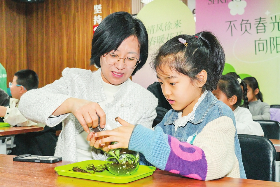 手工制作环节更是将活动推向了高潮。在专业老师的引导下,读者们发挥创意,制作了清明主题的创意微景观和宋锦冰箱贴。大家巧妙运用春日的自然元素与传统工艺,将春日盛景与文化符号融入手作之中。“这样的活动特别有意义。孩子不仅了解了清明的由来和习俗,还在做手工的过程中学到了传统文化。”参与活动的家长李艳芬对活动赞不绝口。