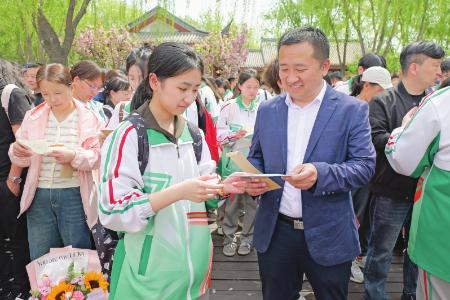 近日,长治市第七中学校举办“励志远行,感恩遇见”主题远足暨成人礼活动,该校2026届高三学子齐聚漳泽湖国家湿地公园,为高考冲刺注入温暖与力量。 短暂的徒步,让大家暂时放下题海压力,在自然中舒展身心,在同行中凝聚情谊。抵达终点后,成人礼仪式温情启幕。亲子互换信件环节,学生们大声向父母告白,并与父母深情拥抱,场面温暖人心。学校还向学生们赠送了《中华人民共和国宪法》读本,以法治传承点亮初心;各班向母校敬献成长纪念相册,校领导为学生授予校徽,定格青春记忆,传承母校荣光。 本组摄影 本报记者 刘琴